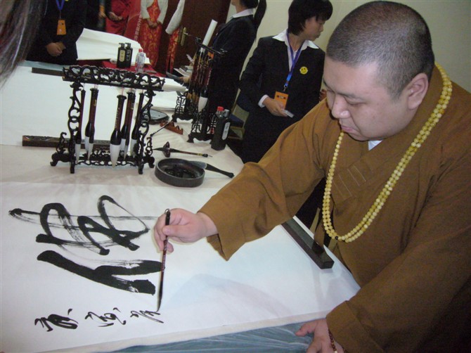 中华周易联合会顾问视觉性应邀参加中华羑里周易文化国际论坛现场书法“佛”字